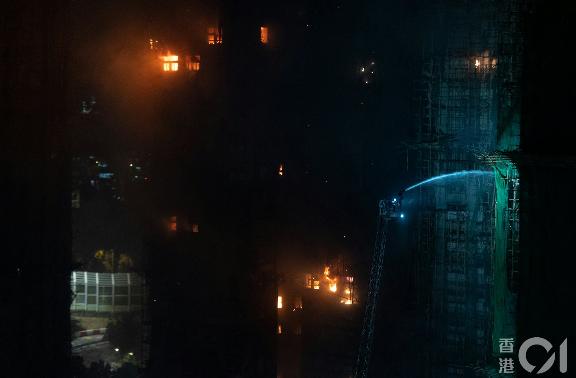 Lực lượng cứu hỏa với hơn 800 người đang triển khai dập lửa từng tầng một. Ảnh: HK01